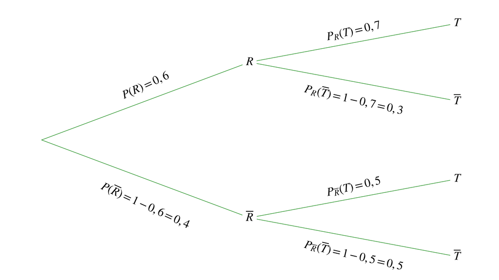 2. Calculer la probabilité qu’un client pris au hasard possède un véhicule récent et ait souscrit au contrat « Tous risques », c’est-à-dire calculer $P(R \cap{T})$.