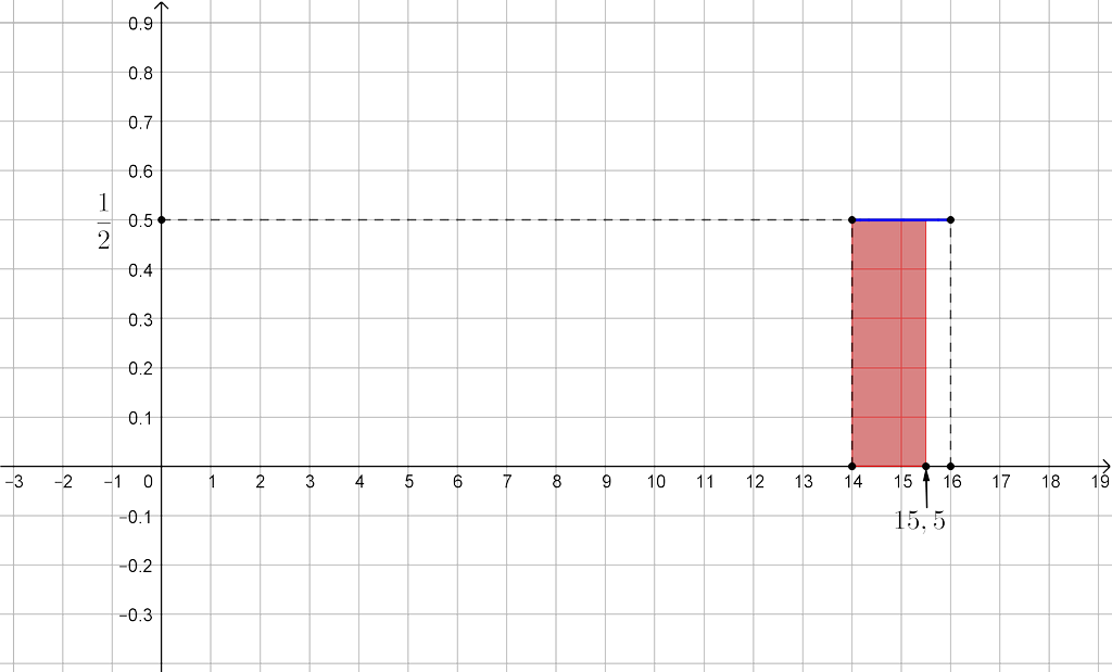 4. Soit $Y$ une variable aléatoire qui suit la loi uniforme sur l’intervalle $[14 ;16]$. $P(Y\leq 15,5)$ est égal à :