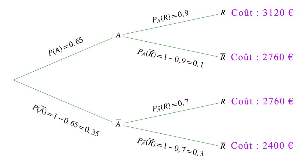 On rappelle que si $E$ est un évènement, $P(E)$ désigne la probabilité de l’évènement $E$ et on note $\bar E$ l’évènement contraire de E.