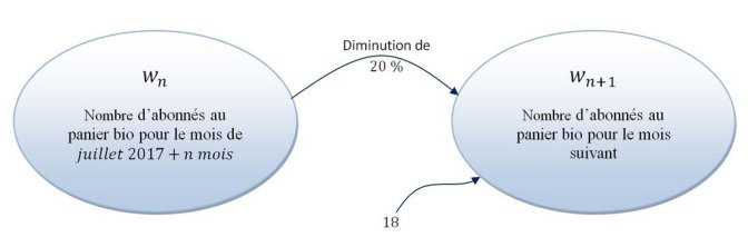 Cette suite $(w_n)$ est, par conséquent, la suite $(u_n)$. C’est donc bien la suite $(u_n)$ qui permet de modéliser le nombre d’abonnés au panier bio le nième mois qui suit le mois de juillet 2017.