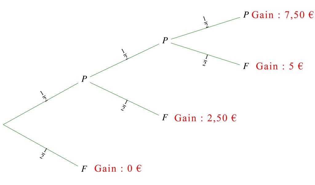 – si on obtient Pile après un lancer, on gagne 2,50 € et on relance la pièce.
