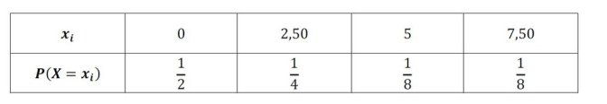 On définit une deuxième variable aléatoire y qui correspond à un gain de 25 euros pour chaque pièce tombé sur le côté face.