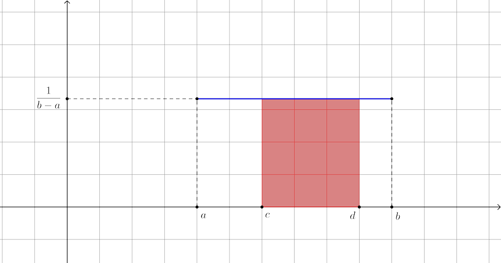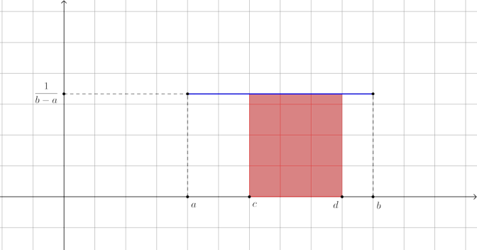 On considère un intervalle $[c ;d]$ inclus dans $[a ;b]$ et $X$ la variable aléatoire qui suit la loi uniforme sur $[a ;b]$.