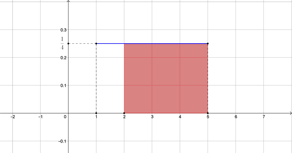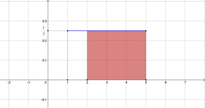 - On dessine un schéma sur lequel on colorie (ou on hachure) un rectangle dont l’aire correspond à la probabilité recherchée.