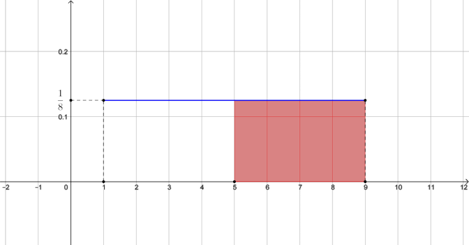 Une variable aléatoire $X$ suit la loi uniforme sur l’intervalle $[1 ;9]$. Indiquer, en justifiant, si les propositions suivantes sont VRAIES ou FAUSSES.