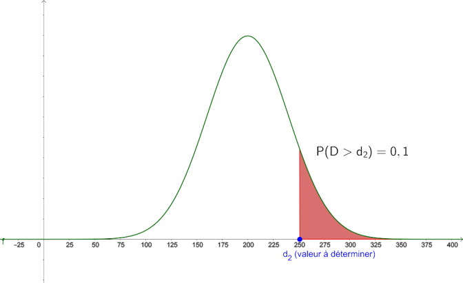 - Déterminer l’autonomie $d_2$ à partir de laquelle la probabilité que le véhicule roule encore est de 10 % ?