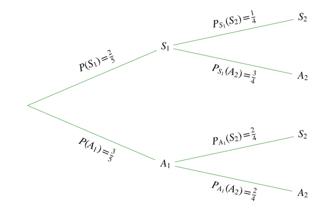 – $S_2$ l’évènement : un jeton portant le symbole "-" a été obtenu lors du 2ème tirage.