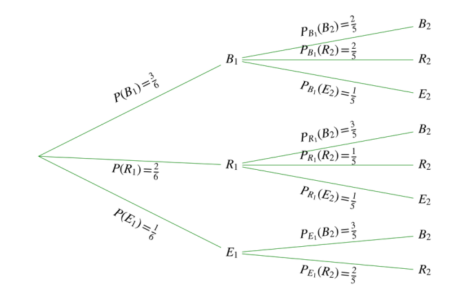- On repère les chemins correspondants à l’évènement dont on doit calculer la probabilité.