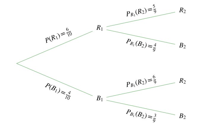 – $B_1$ l’évènement "tirer une boule bleue au 1er tirage".